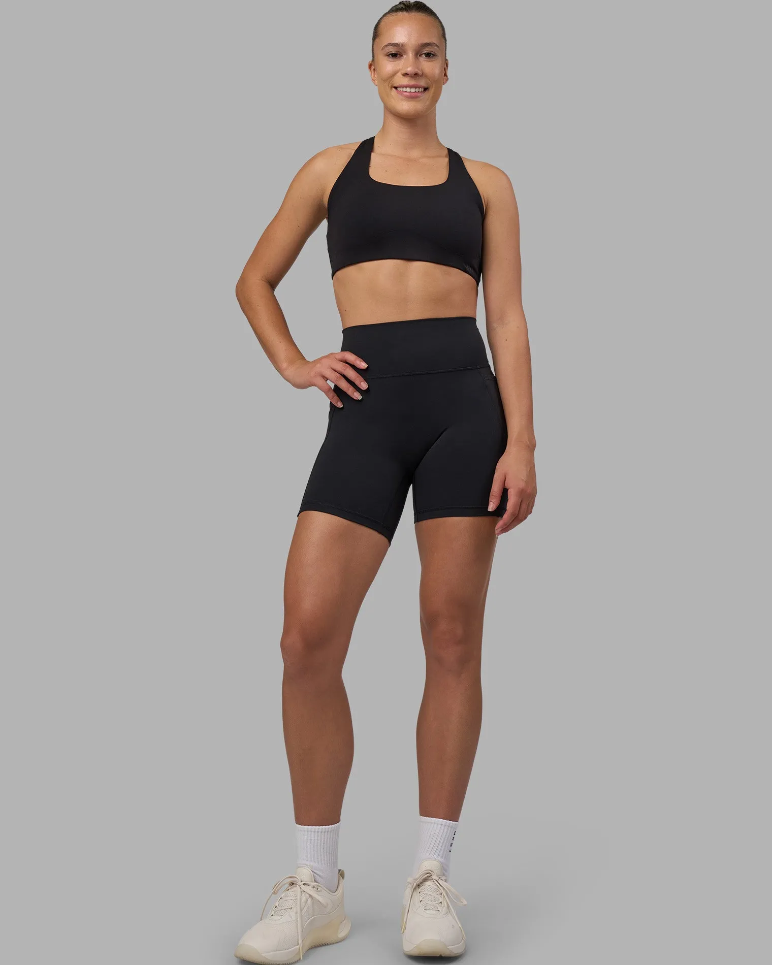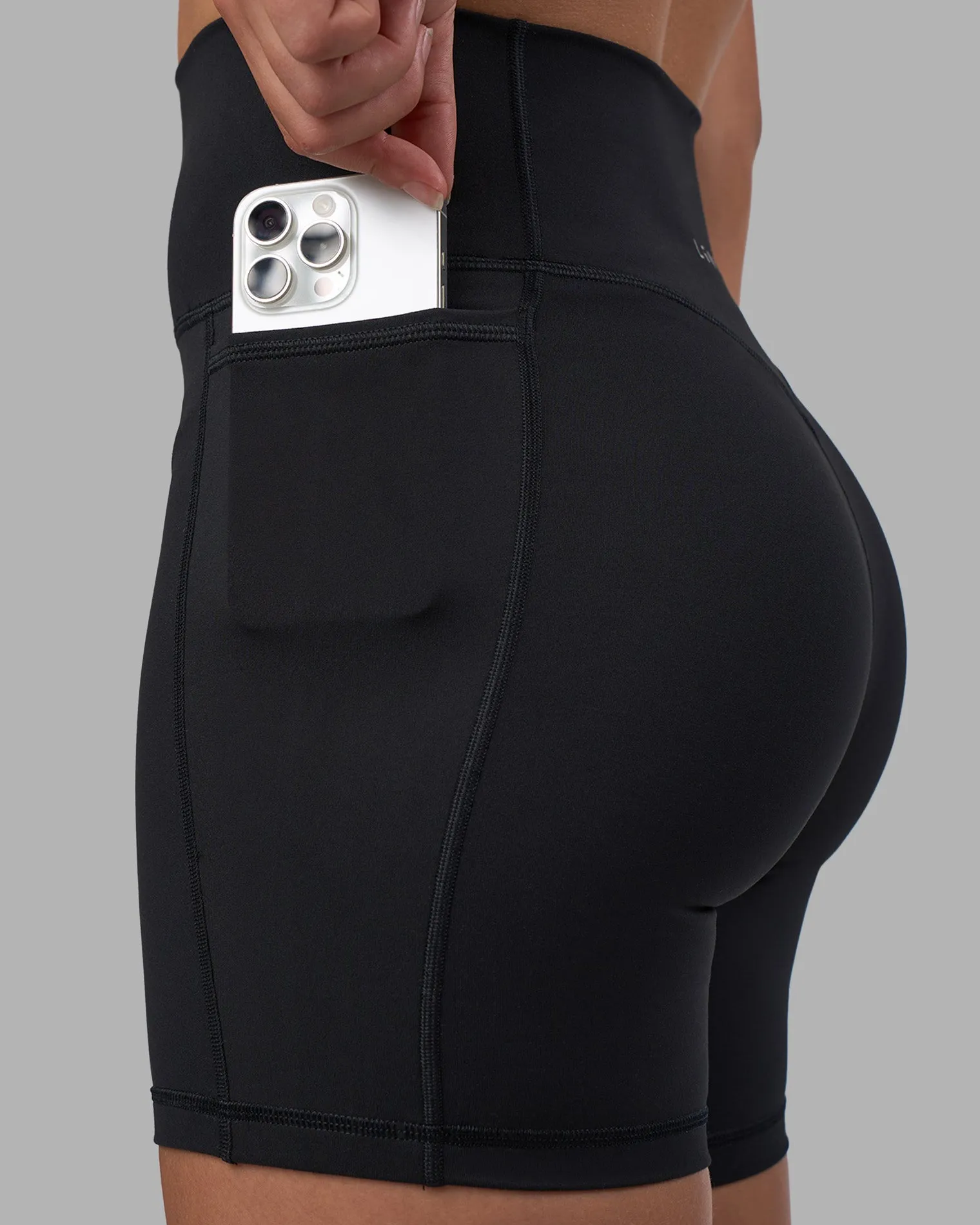 These Black 6″ Shorts are the same Fusion with Pockets you know and love – reimagined with a V-Shaped back yoke designed to enhance the natural curves of the body. This expertly tailored seam creates a contoured fit, lifting and shaping the rear for a flattering silhouette.