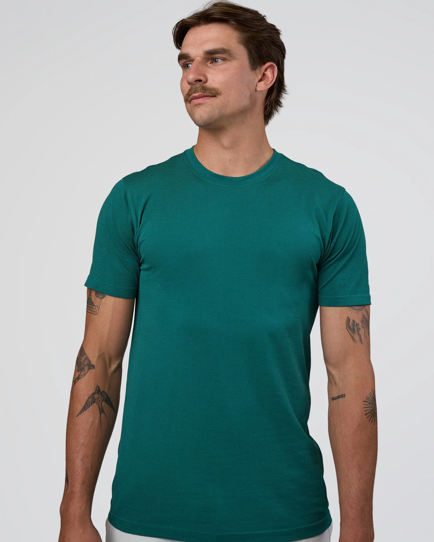 Designed for intense activities, the Teal AeroFLX+ Seamless Set In Tee offers a friction-free, flexible fit and moisture-wicking, breathable fabric for optimal performance and comfort.