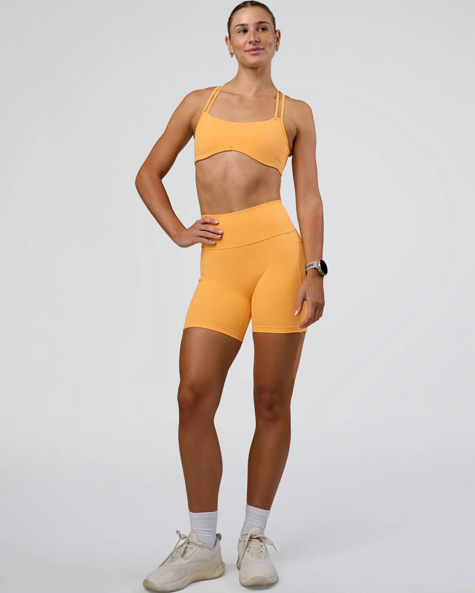 The same Fusion Mid Short Tights with Pockets you know and love, just with a name upgrade! These Warm Apricot Fusion Ultra High-Rise 6″ Shorts With Pockets combine features from four of our beloved legging styles. Fused with all the good stuff, including a high rise fold over waistband, side pockets, 4-way stretch Rep fabric and we’ve removed the front seam for a comfortable, supportive fit. When it comes to versatile training, Fusion is your go to for all round performance.