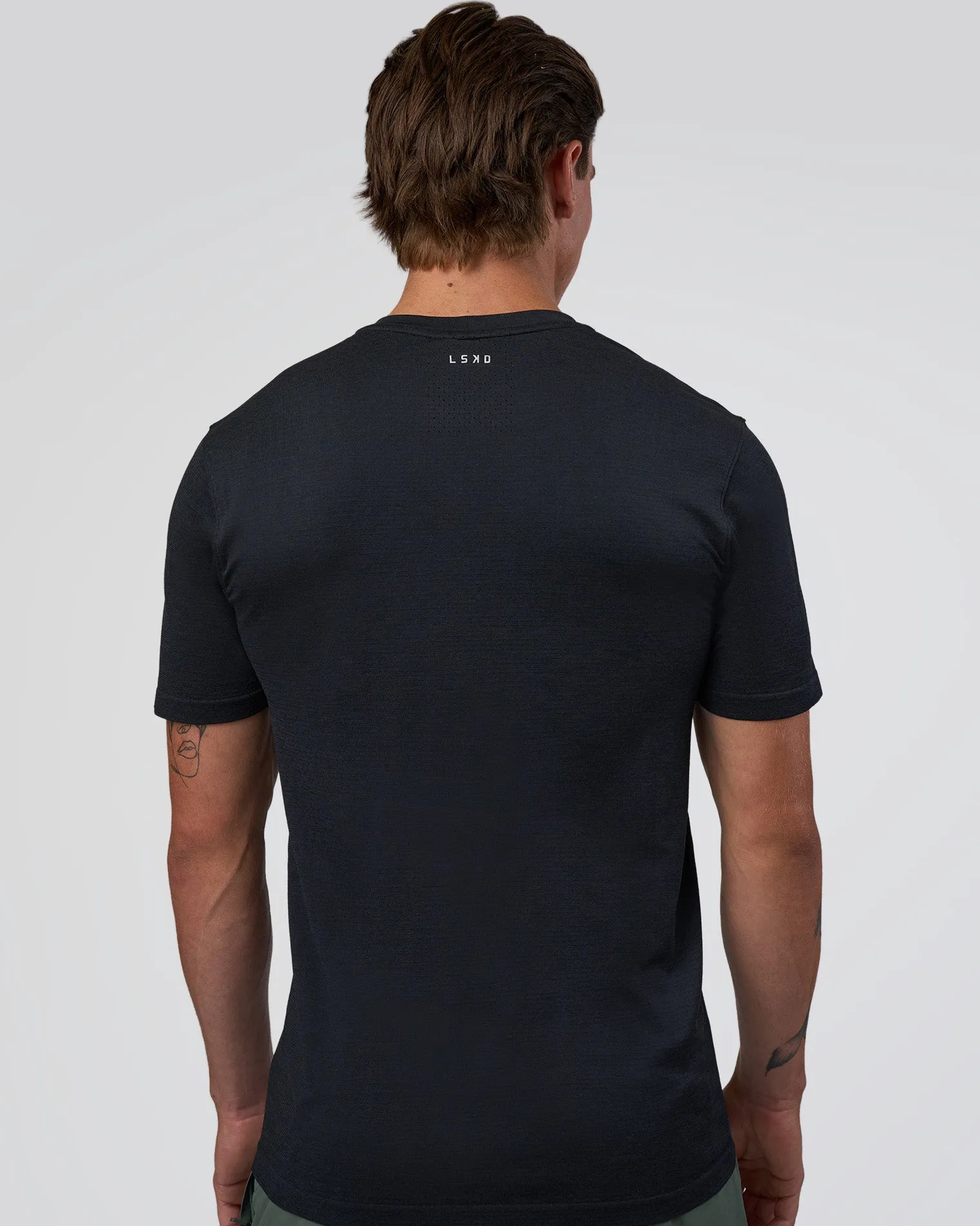 Designed for intense activities, the Black Marl AeroFLX+ Seamless Set In Tee offers a friction-free, flexible fit and moisture-wicking, breathable fabric for optimal performance and comfort.