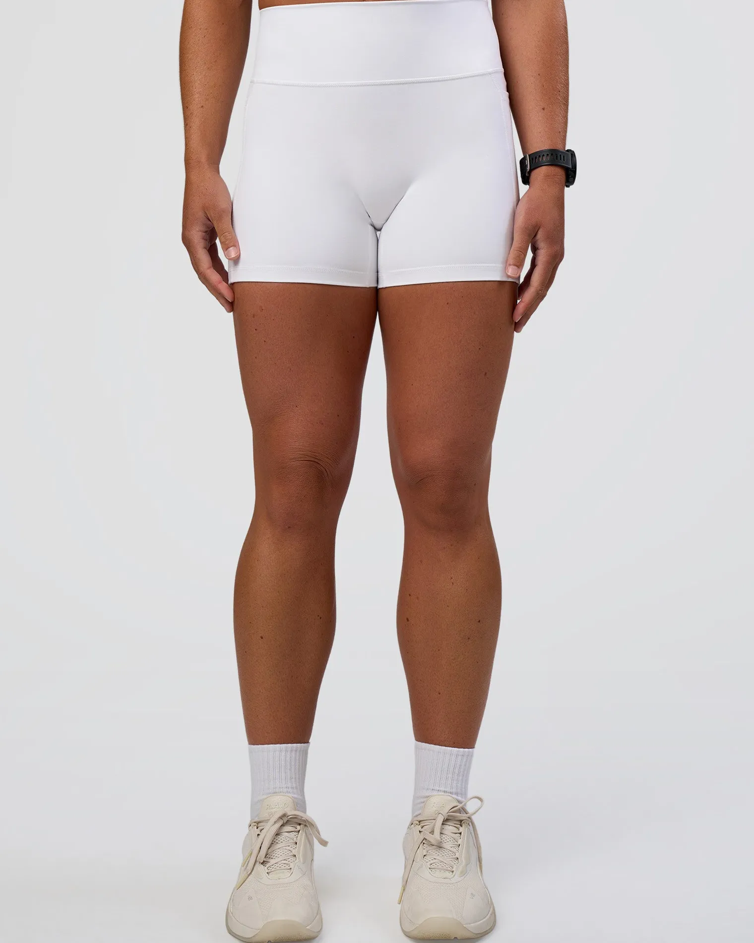 The same Fusion X-Short Tights with Pockets you know and love, just with a name upgrade! These White Fusion Ultra High-Rise 4″ Shorts With Pockets combine features from four of our beloved legging styles. Fused with all the good stuff, including a high rise fold over waistband, side pockets, 4-way stretch Rep fabric and we’ve removed the front seam for a comfortable, supportive fit. When it comes to versatile training, Fusion is your go to for all round performance.