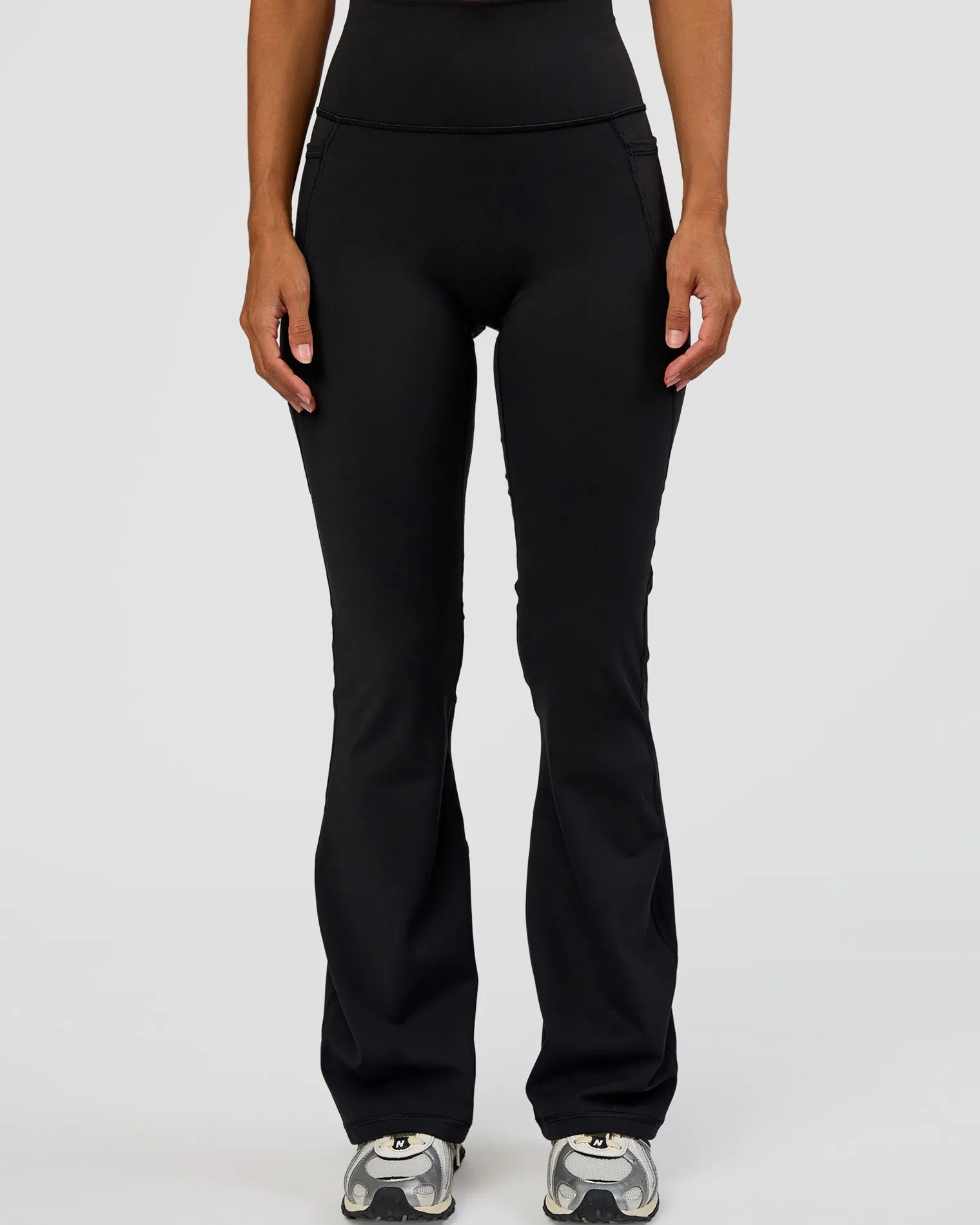 The same Everyday Flare Tights you know and love just in a petite fit for the shorter gals, side phone pockets and a name upgrade! These Black Fusion Ultra High-Rise Flared Petite Leggings With Pockets have a natural synergy of performance and everyday comfort. Made with our signature REP Fabric with some of the winning features of our Fusion Leggings, such as a high-rise foldover waistband and no centre-seam PLUS an added flare from the knee. Perfectly suited for mild flow and stretch workouts and a versatile addition to your everyday wardrobe.