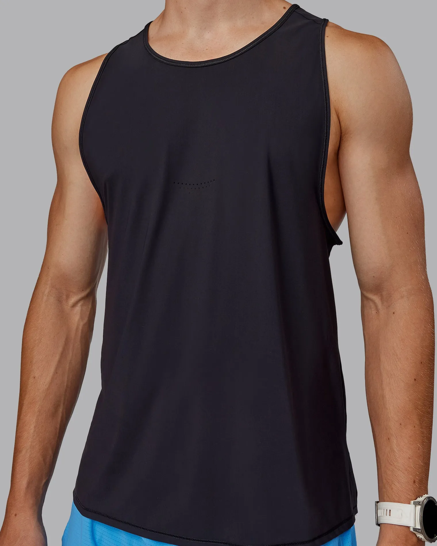 Designed for high intensity runs. The Mens Black Cadence Tank is crafted from ultra lightweight and breathable Italian fabric. Experience that barely there feeling so you can run without distractions.