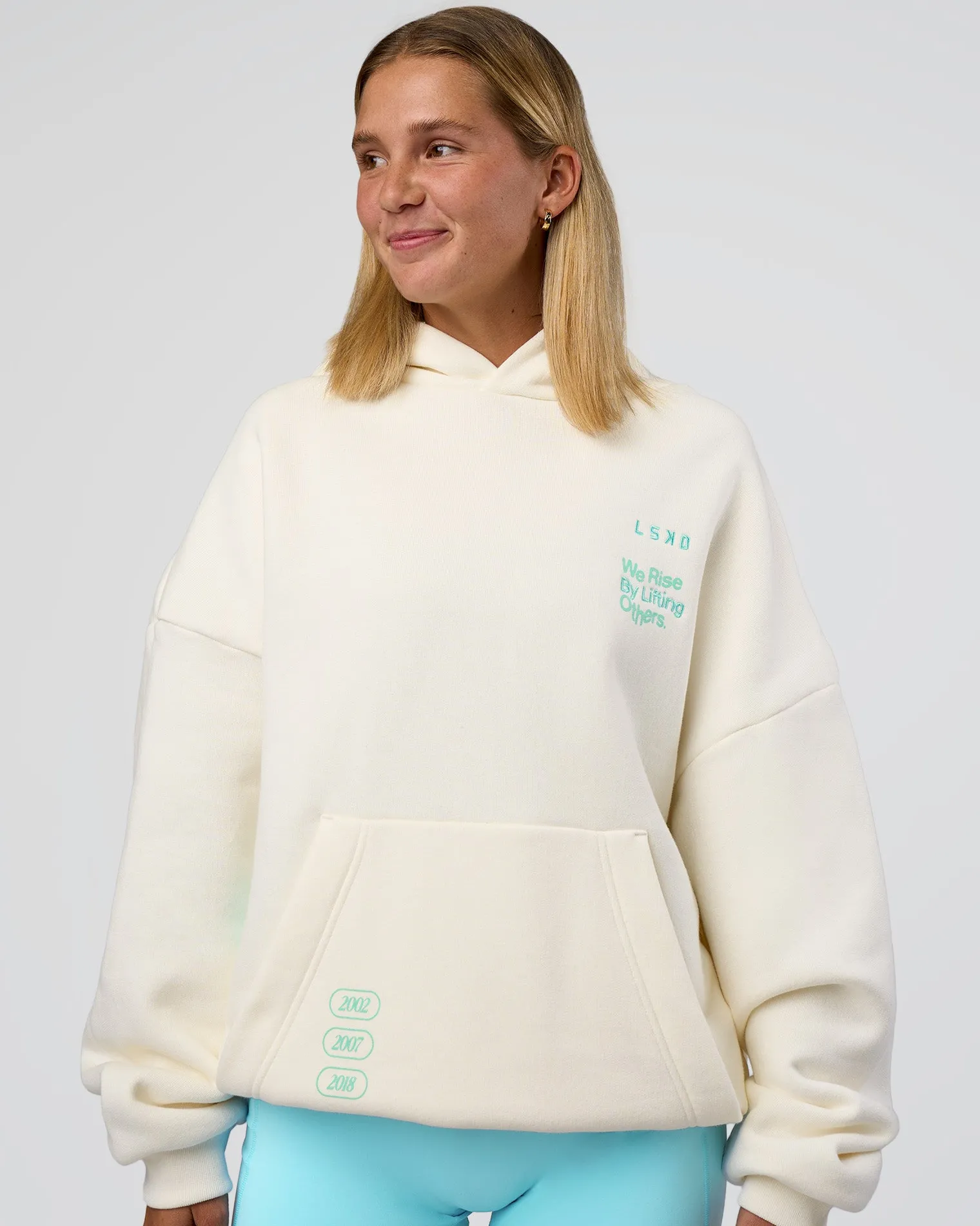 Fashion LSKD Sticker Unisex Oversized Hoodie Off White Jelly Mint