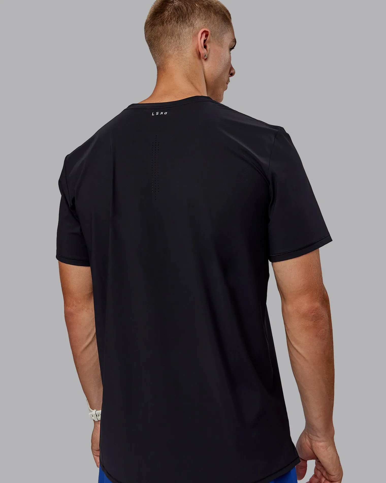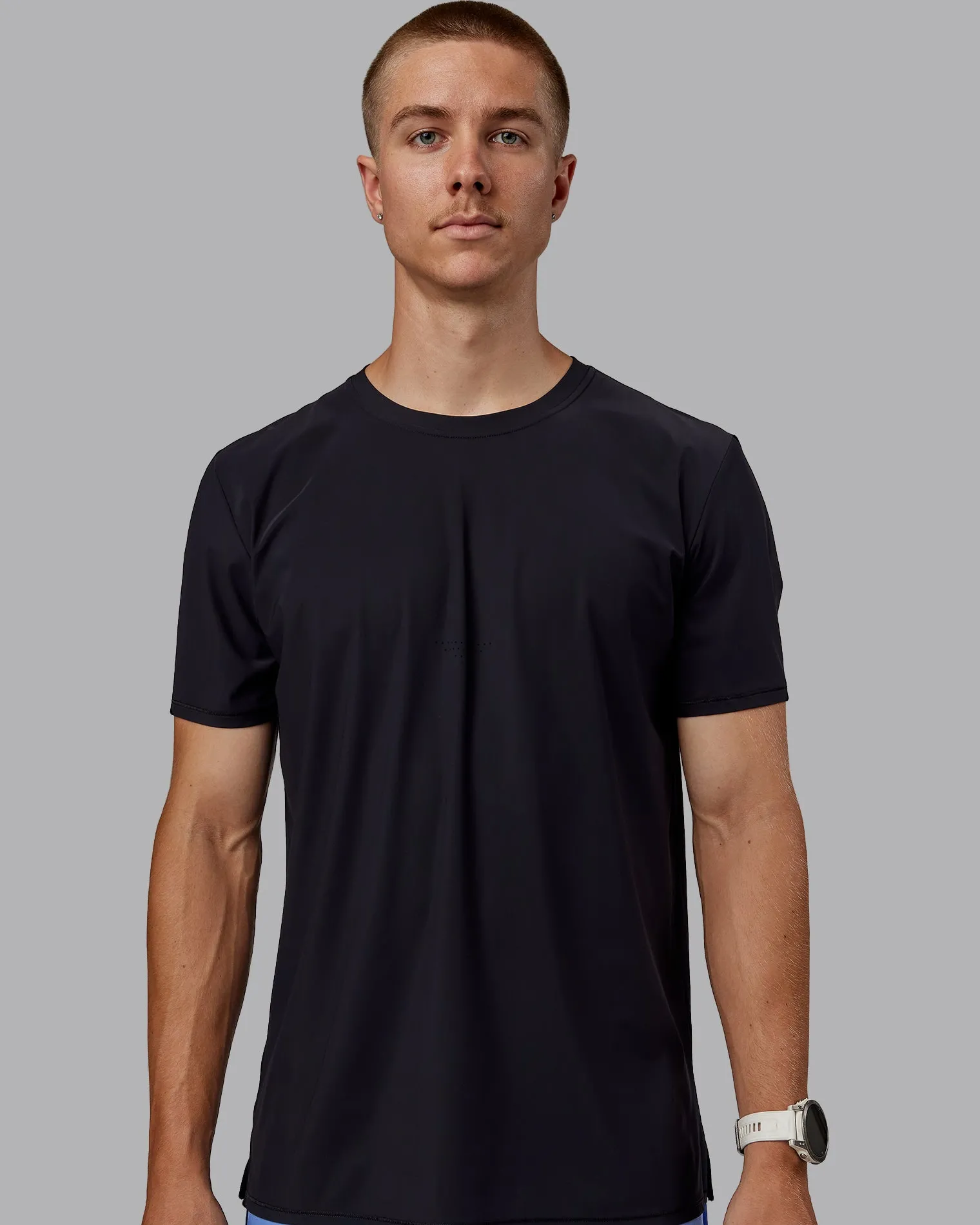 Designed for high intensity runs. The Mens Black Cadence Tee is crafted from ultra lightweight and breathable Italian fabric. Experience that barely there feeling so you can run without distractions.