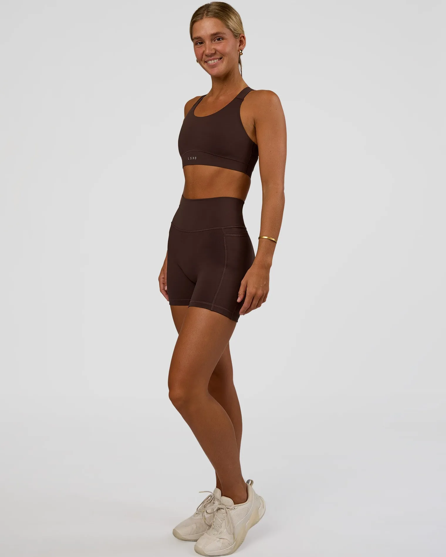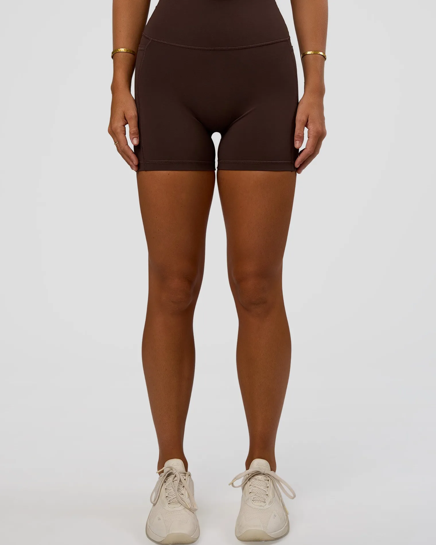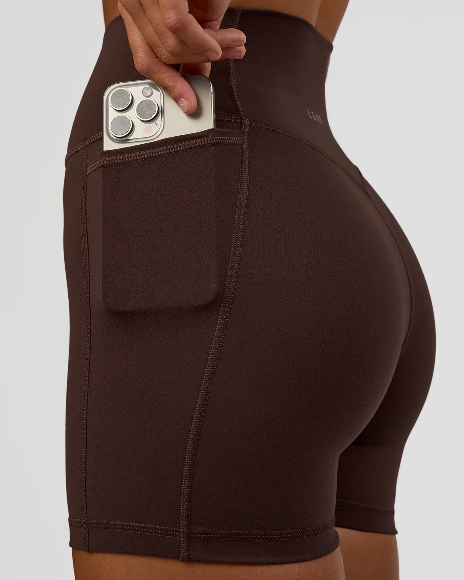 New LSKD Fusion V-Contour Ultra High-Rise 4” Short Pockets Hot Chocolate