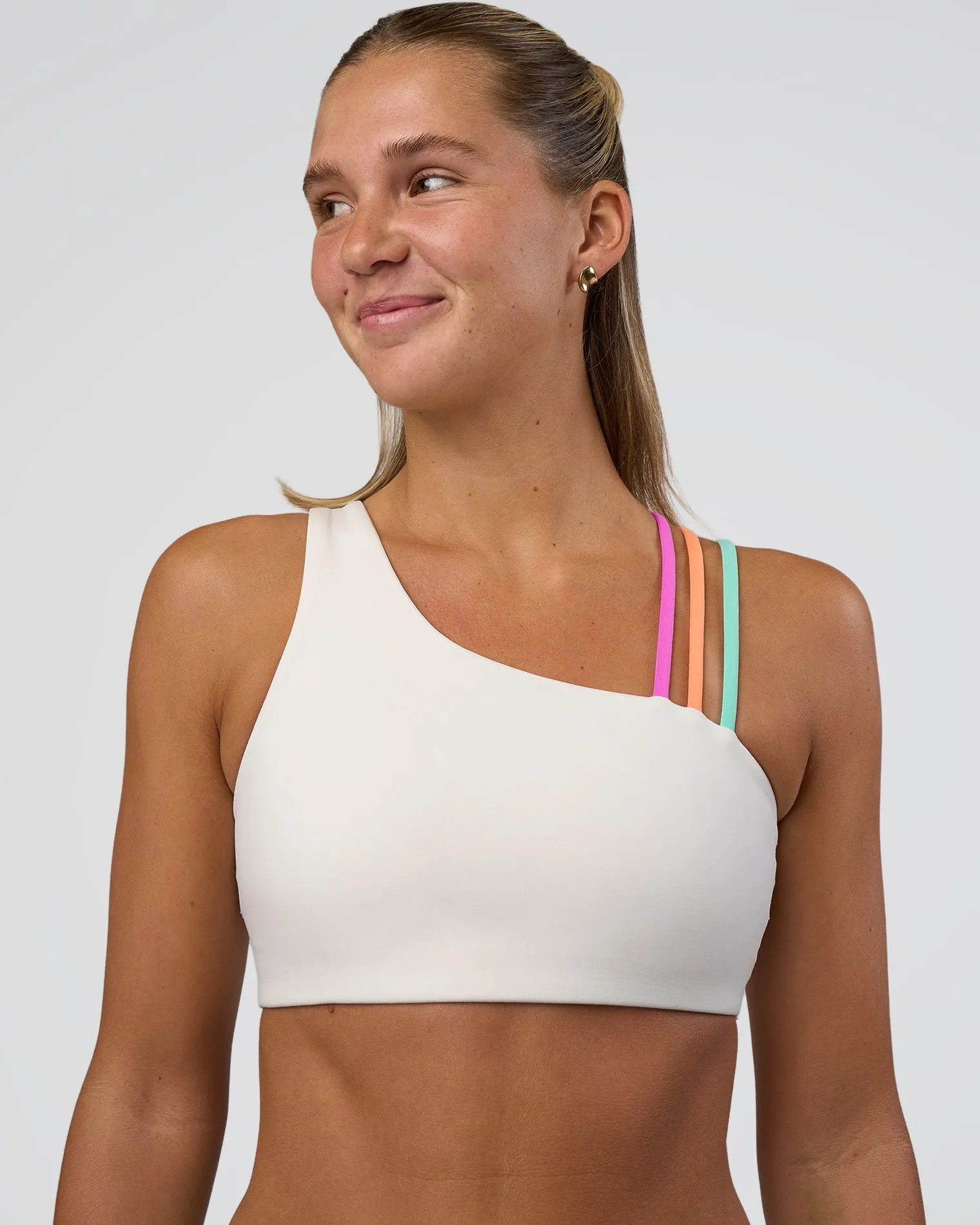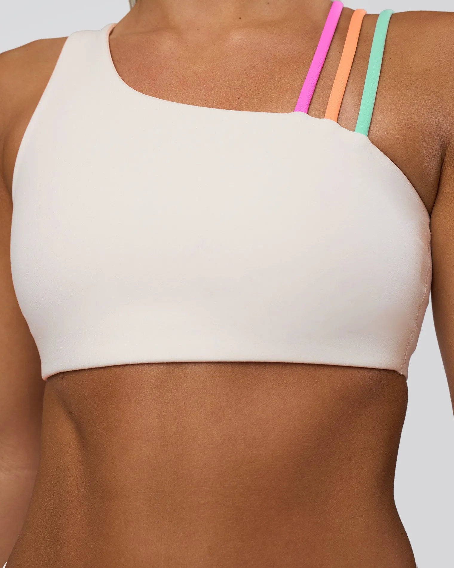 Designed for the perfect balance of style and performance, the Off White-Multi Galvanise Sports Bra 2.0 features our compressive REP fabric in a trendy asymmetric shape.