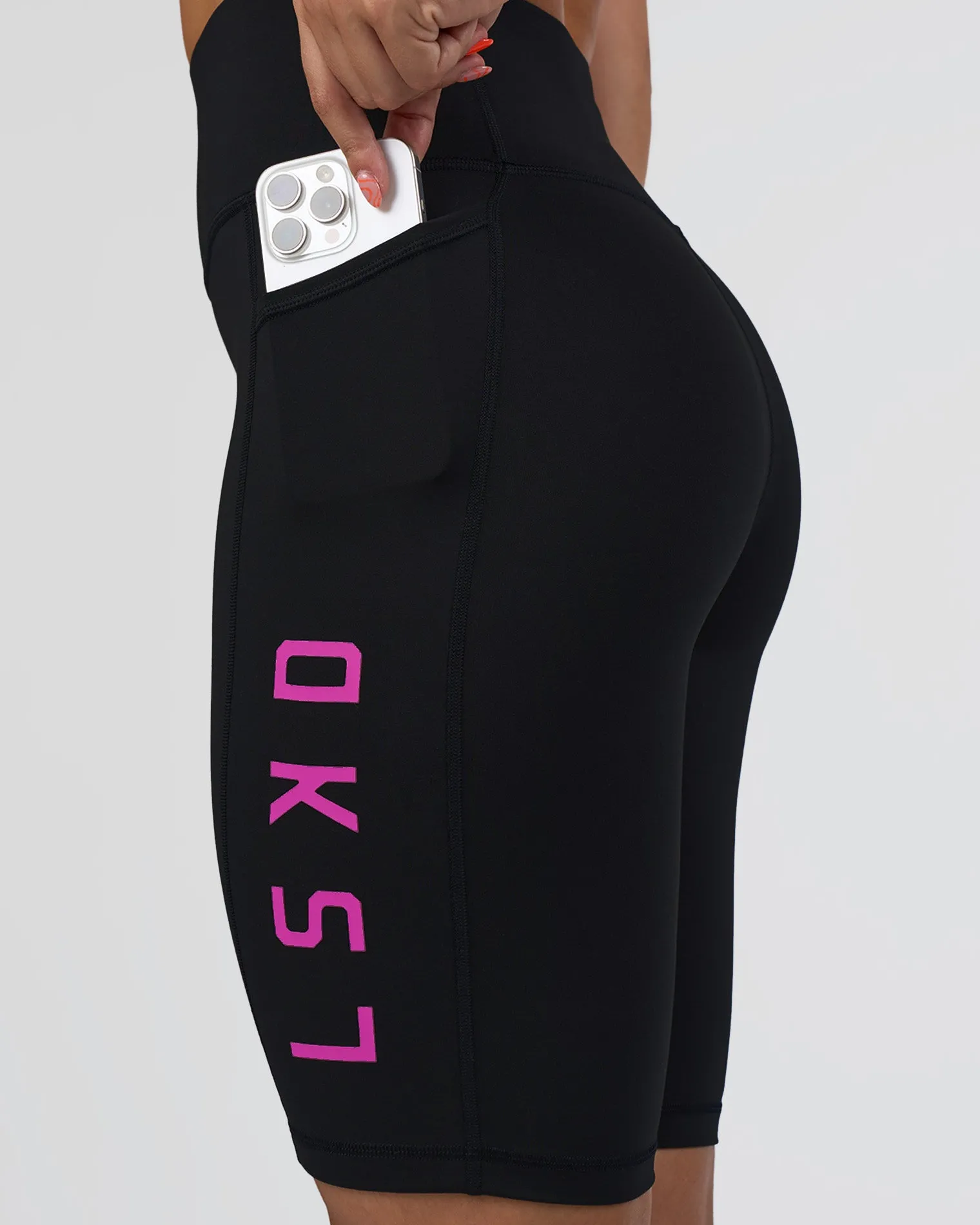 Online LSKD Rep Ultra High-Rise 9" Long Bike Short Pockets Black Ultra Fuchsia