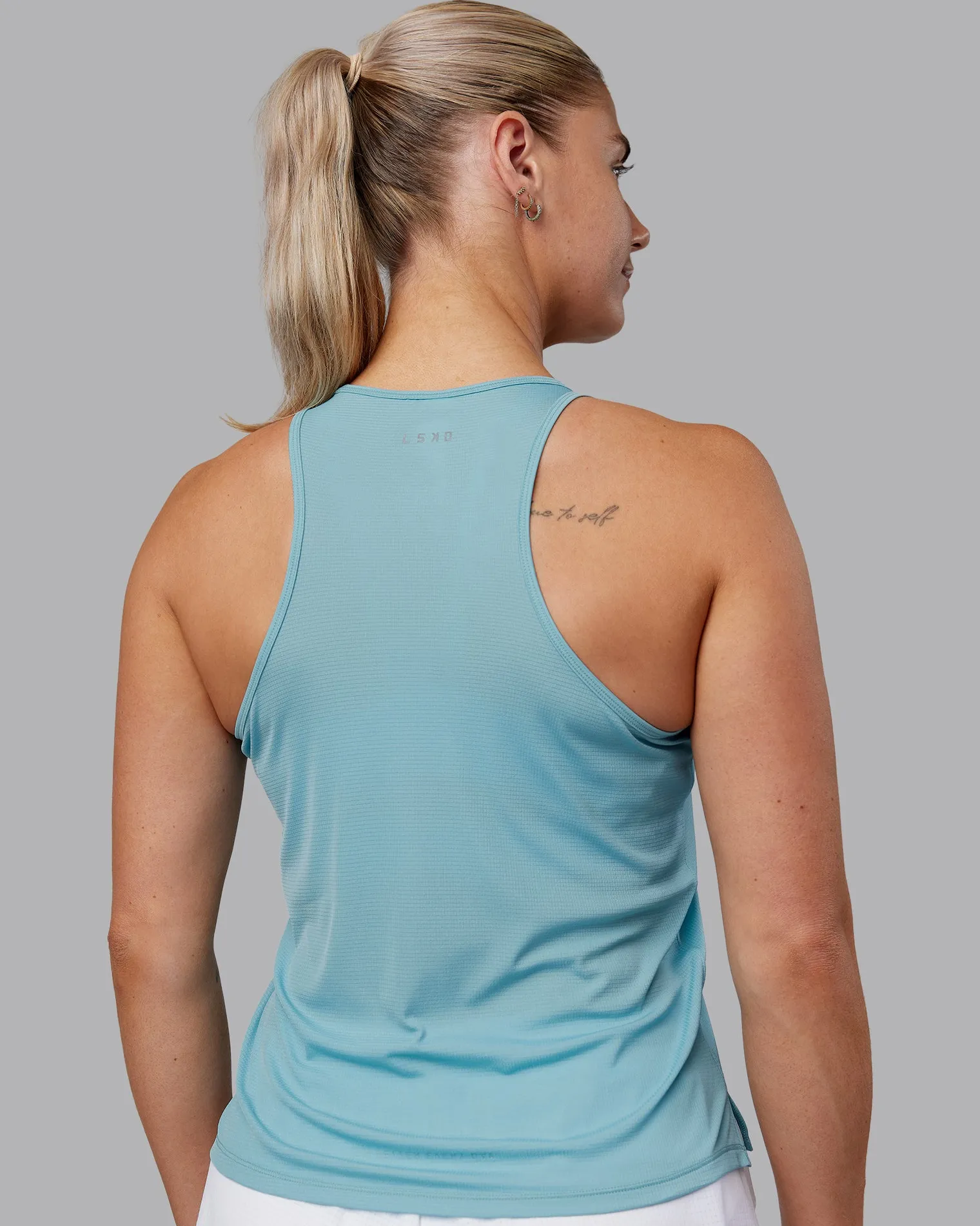 Designed to help you tackle your sweatiest runs; the Womens Pace Running Tank in Retro Blue uses an ultra lightweight and extremely breathable fabric that keeps you feeling cool and dry.