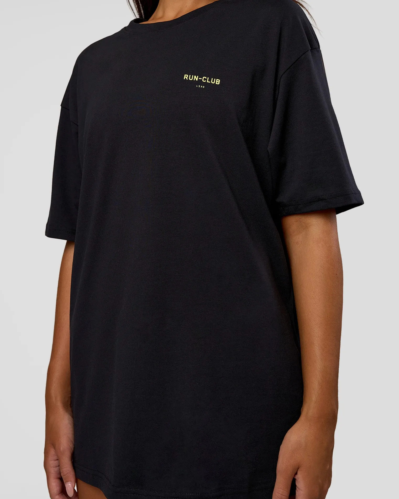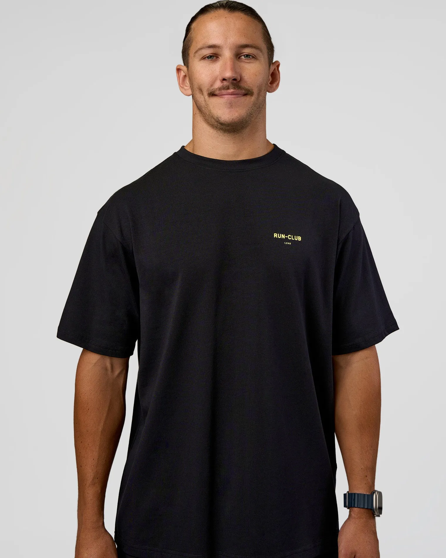 Outlet LSKD Unisex RUN CLUB FLXCotton Tee Oversize Black Yellow Fizz