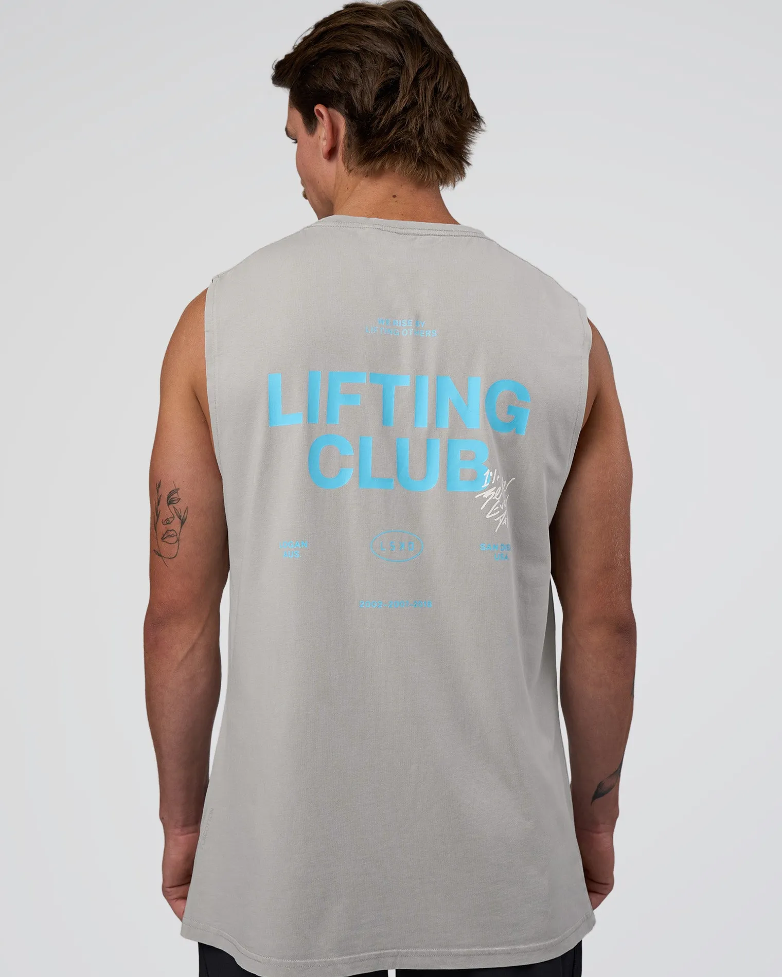Rep with your lifting buddy. A washed alloy-baltic sea limited edition exclusive tank for the crew to rep in the iron paradise, paying homage to our milestone years and our two home bases in Logan, AUS and San Diego, USA. Featuring our ultra soft cotton with 5% spandex for added mobility when you need it.