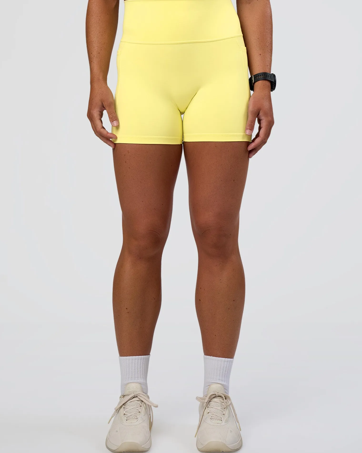 The same Fusion X-Short Tights with Pockets you know and love, just with a name upgrade! These Yellow Fizz Fusion Ultra High-Rise 4″ Shorts With Pockets combine features from four of our beloved legging styles. Fused with all the good stuff, including a high rise fold over waistband, side pockets, 4-way stretch Rep fabric and we’ve removed the front seam for a comfortable, supportive fit. When it comes to versatile training, Fusion is your go to for all round performance.