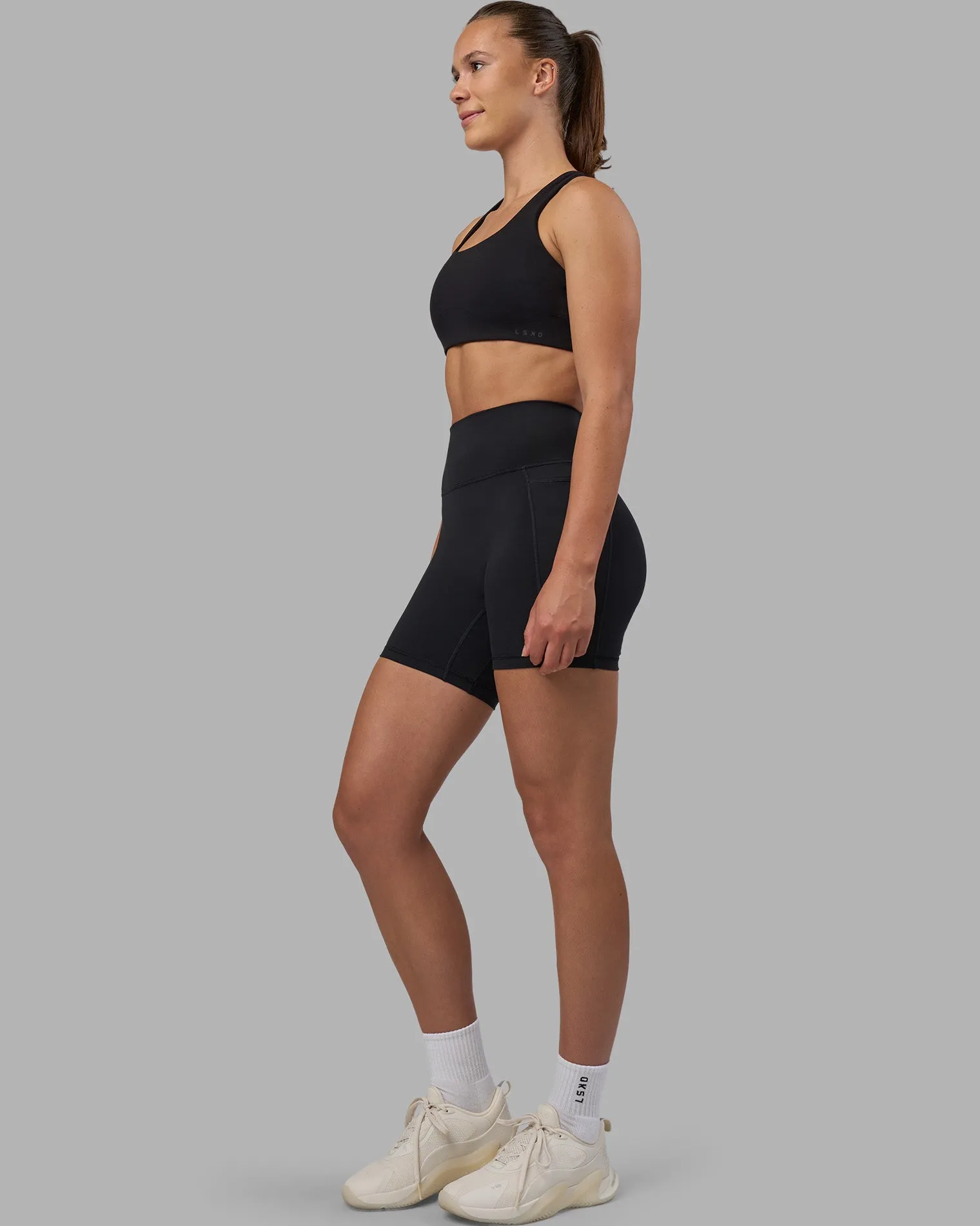 These Black 6″ Shorts are the same Fusion with Pockets you know and love – reimagined with a V-Shaped back yoke designed to enhance the natural curves of the body. This expertly tailored seam creates a contoured fit, lifting and shaping the rear for a flattering silhouette.