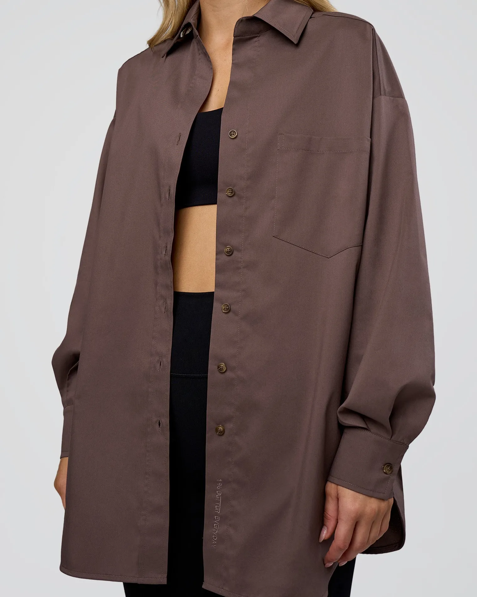Designed for a laid-back fit with levelled-up style, the Cocoa Go-To Oversized Shirt brings that “I just threw it on” energy but better. An oversized silhouette with tonal branding, this shirt is a versatile wardrobe staple that moves with you.