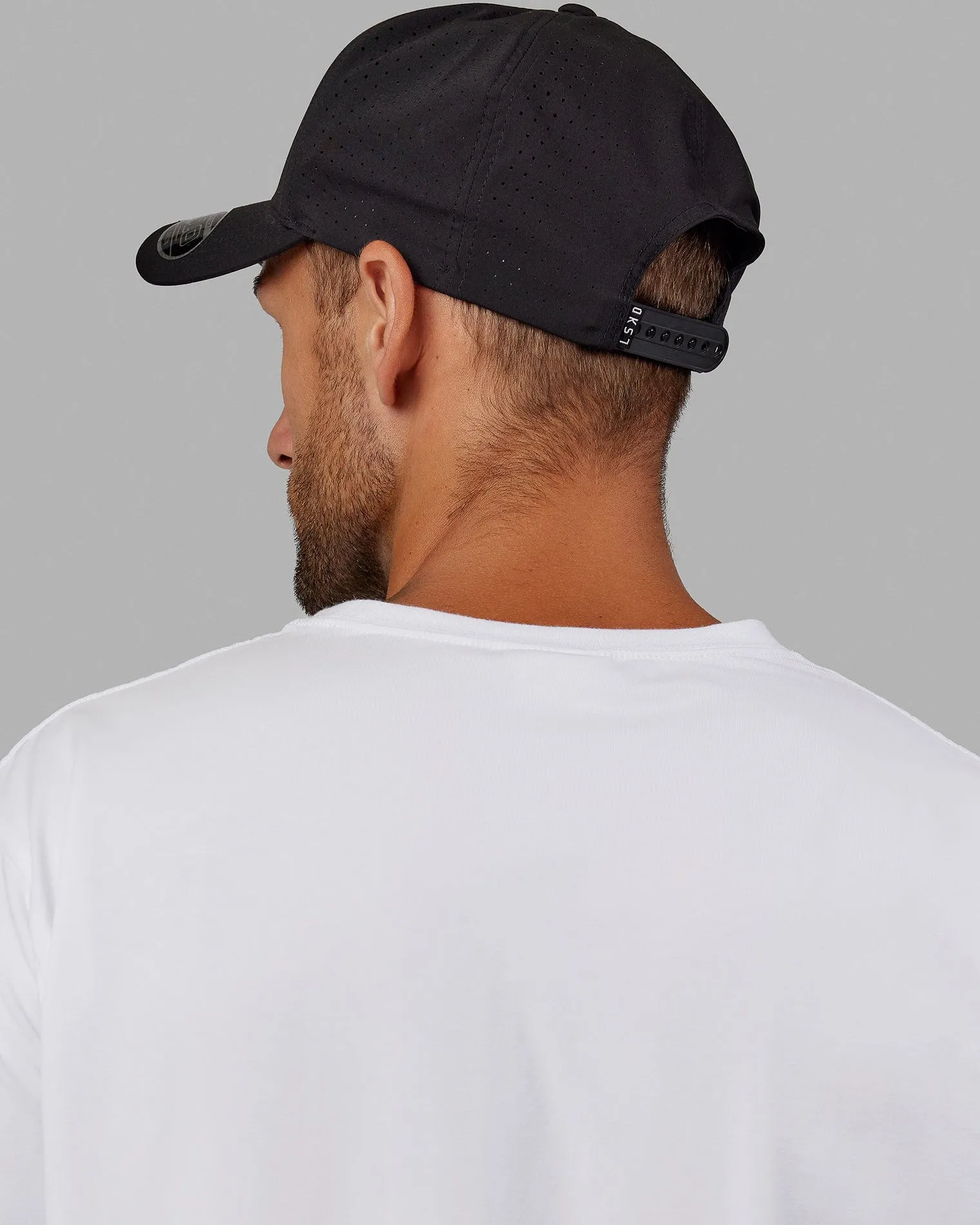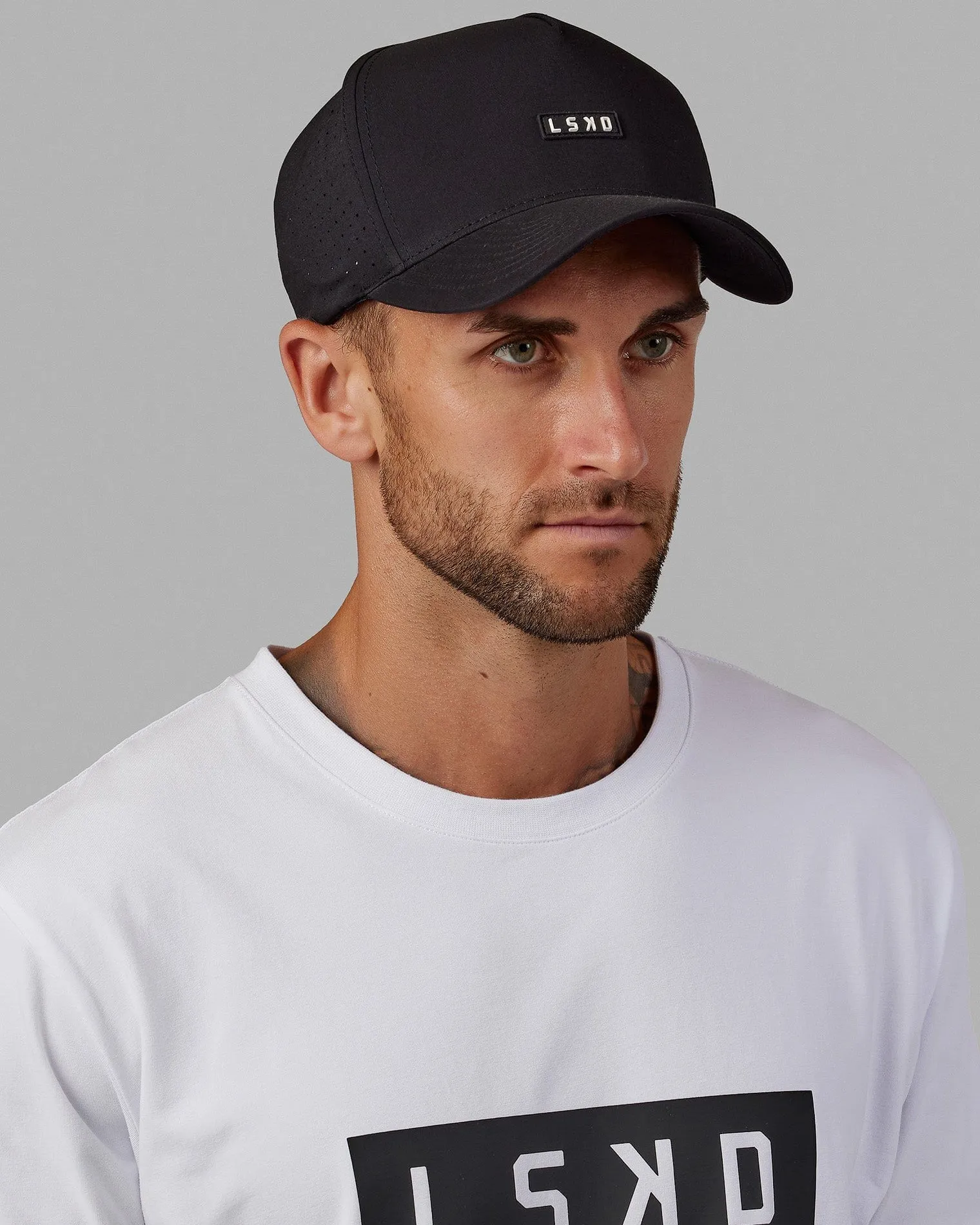 Built for performance with quick drying fabric and perforated side panels for maximum breathability. Running a classic deep fit with snapback closure and a curved brim, the Black Perform Vented Cap brings a familiar street style back to life with a new performance edge.