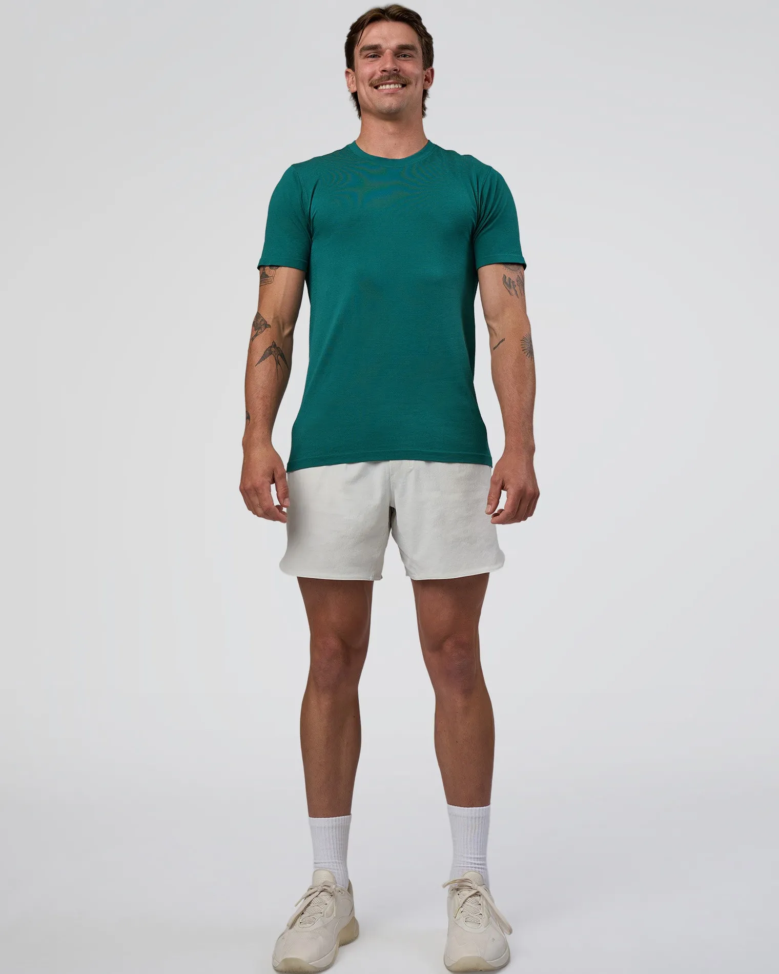 Designed for intense activities, the Teal AeroFLX+ Seamless Set In Tee offers a friction-free, flexible fit and moisture-wicking, breathable fabric for optimal performance and comfort.