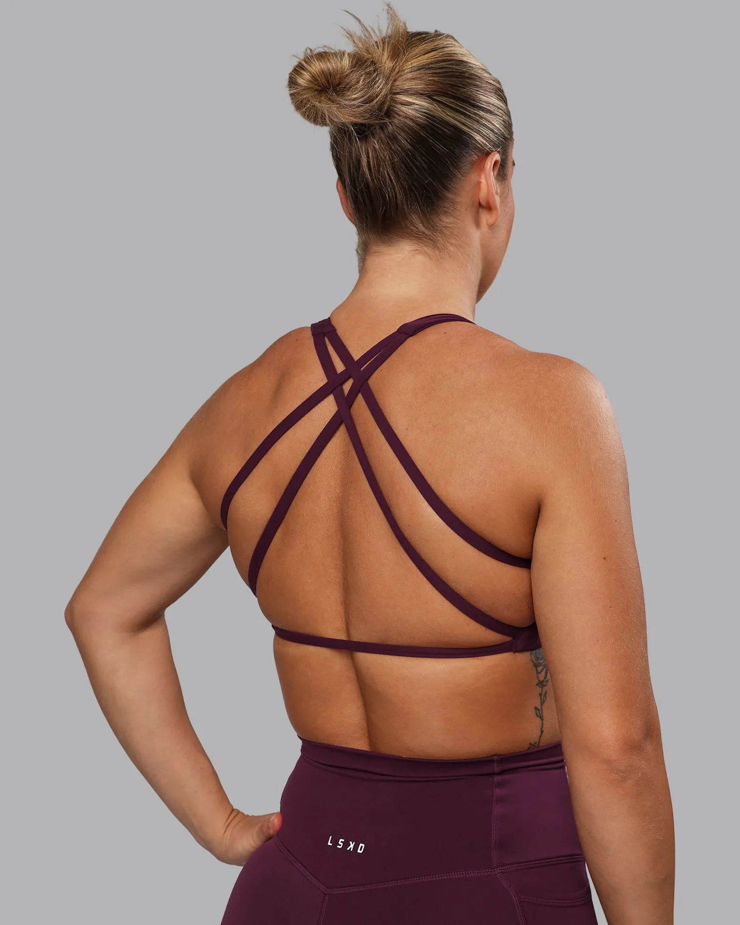 Soft, feminine and strong. Designed for functional training, rediscover the power of your movements with the Cherry Lacquer Aspire Sports Bra.