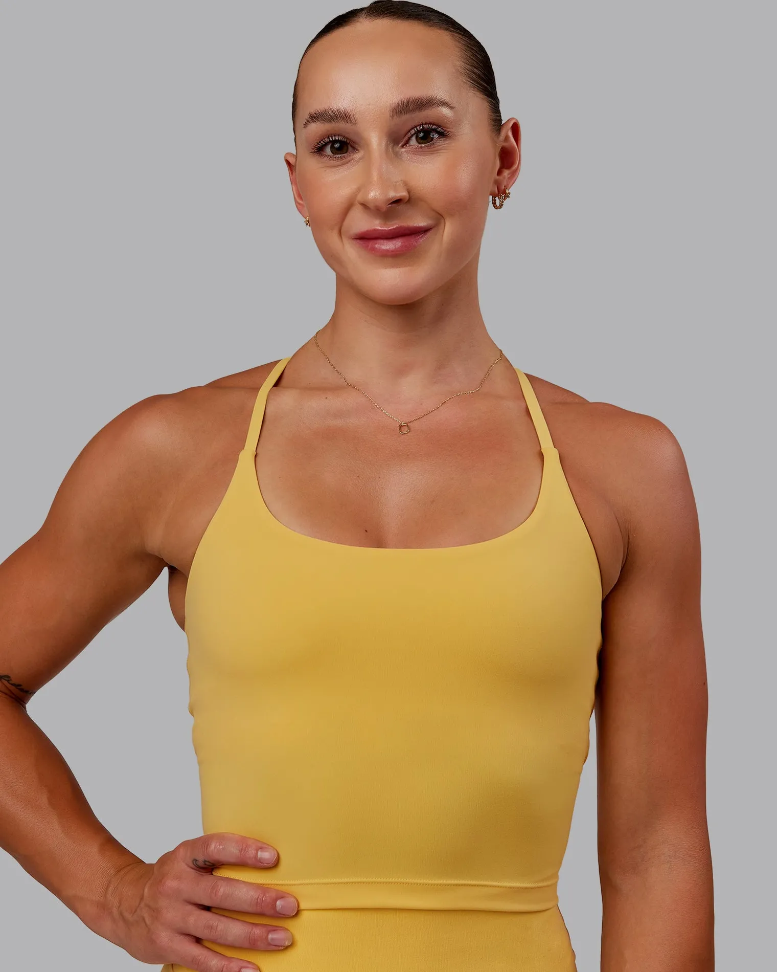 Designed to be your go-to tank. With all the features of your favourite Twist Sports Bra, the Banana Cream Twist Performance Tank fits like a second skin for a distraction free workout.