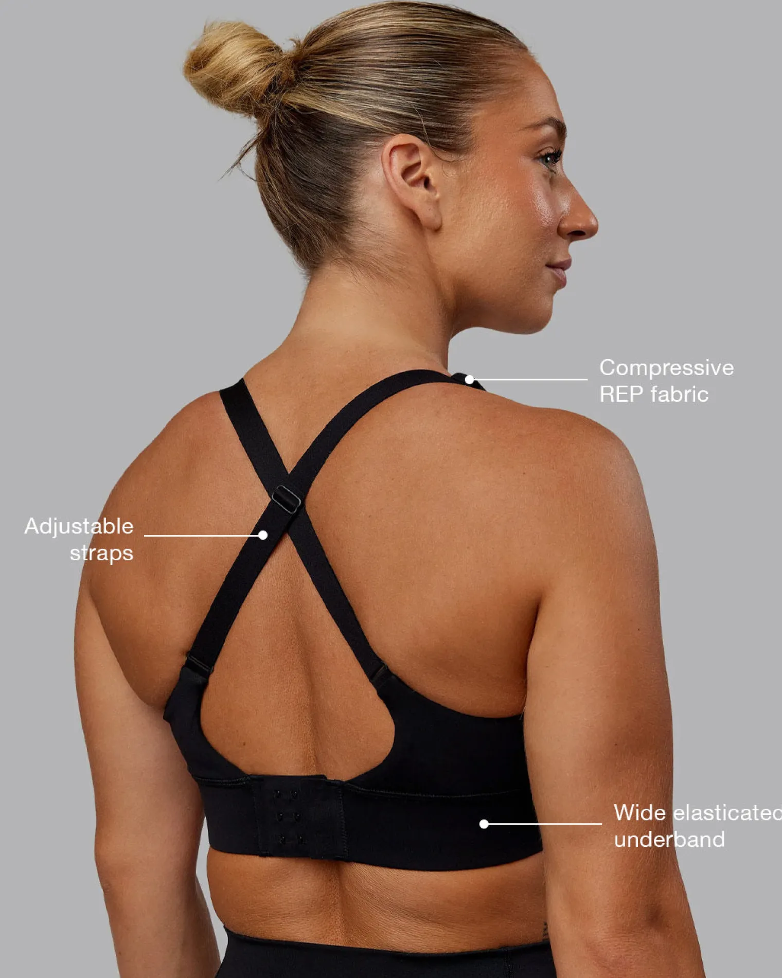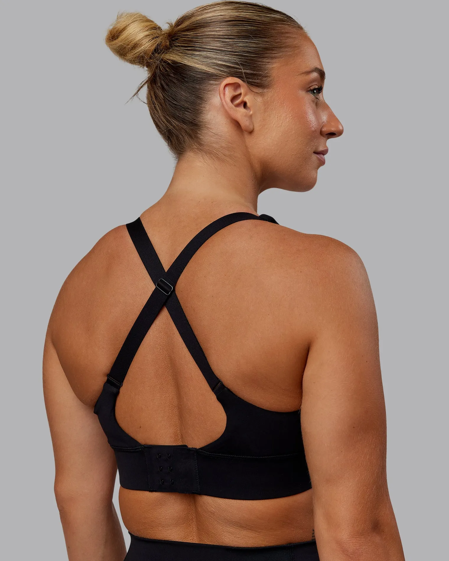 The Black Accelerate Sports Bra is designed for a fully customisable fit, offering medium-level support and maximum comfort during your most intense workouts.