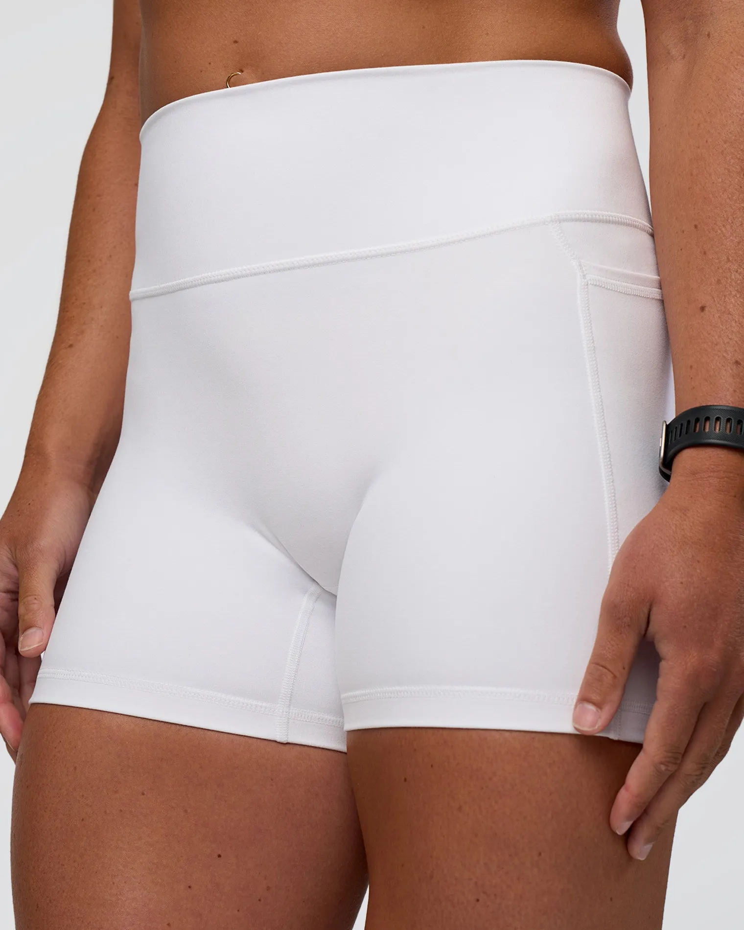 The same Fusion X-Short Tights with Pockets you know and love, just with a name upgrade! These White Fusion Ultra High-Rise 4″ Shorts With Pockets combine features from four of our beloved legging styles. Fused with all the good stuff, including a high rise fold over waistband, side pockets, 4-way stretch Rep fabric and we’ve removed the front seam for a comfortable, supportive fit. When it comes to versatile training, Fusion is your go to for all round performance.