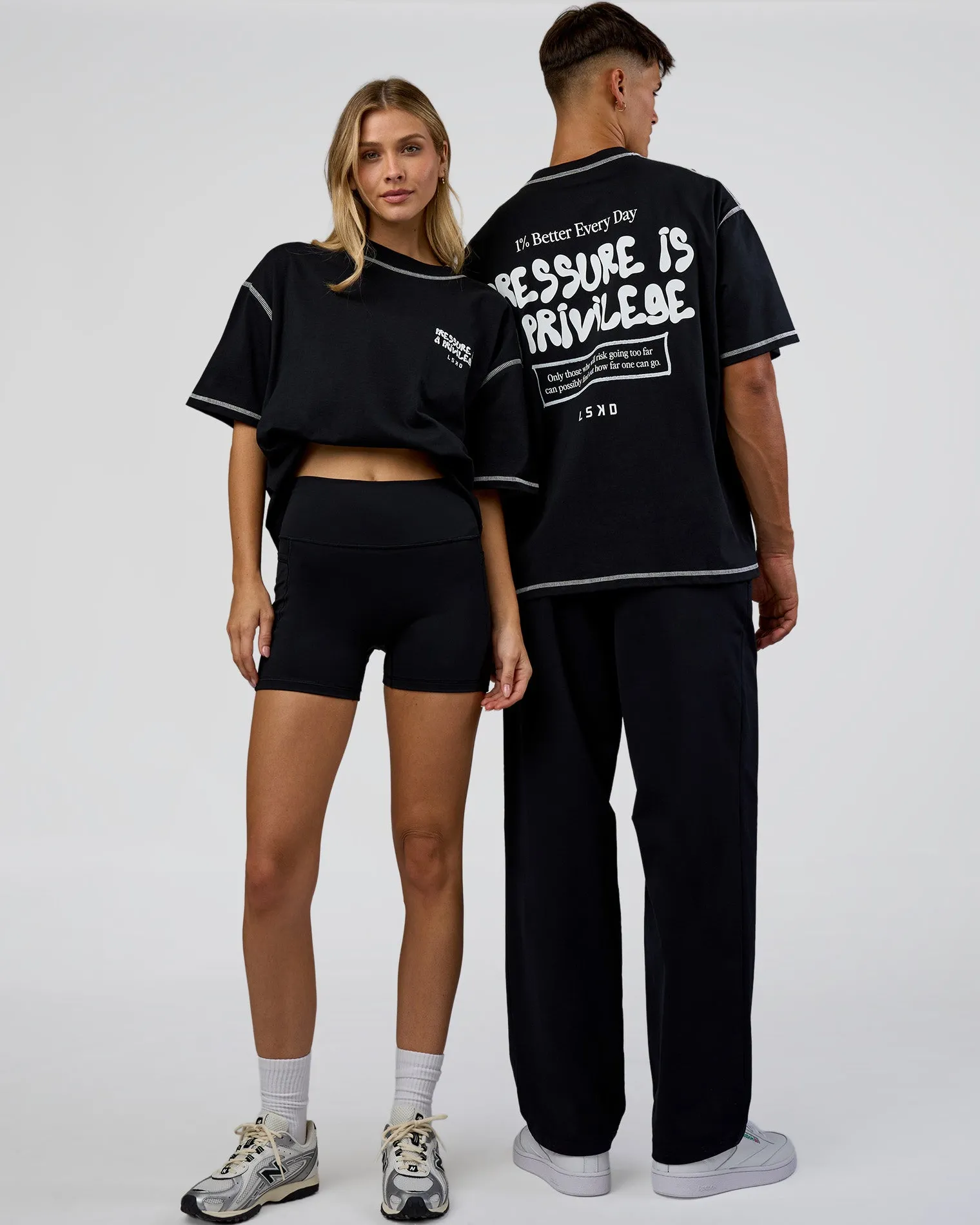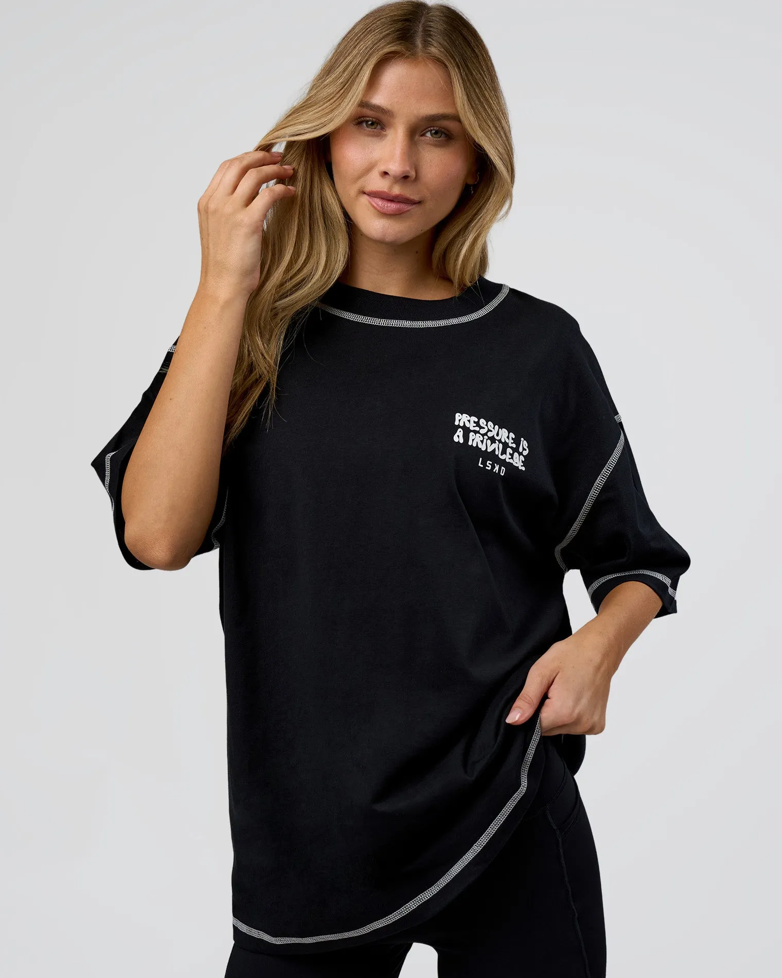 Fashion LSKD Pressure Is Privilege Oversized Tee Black White