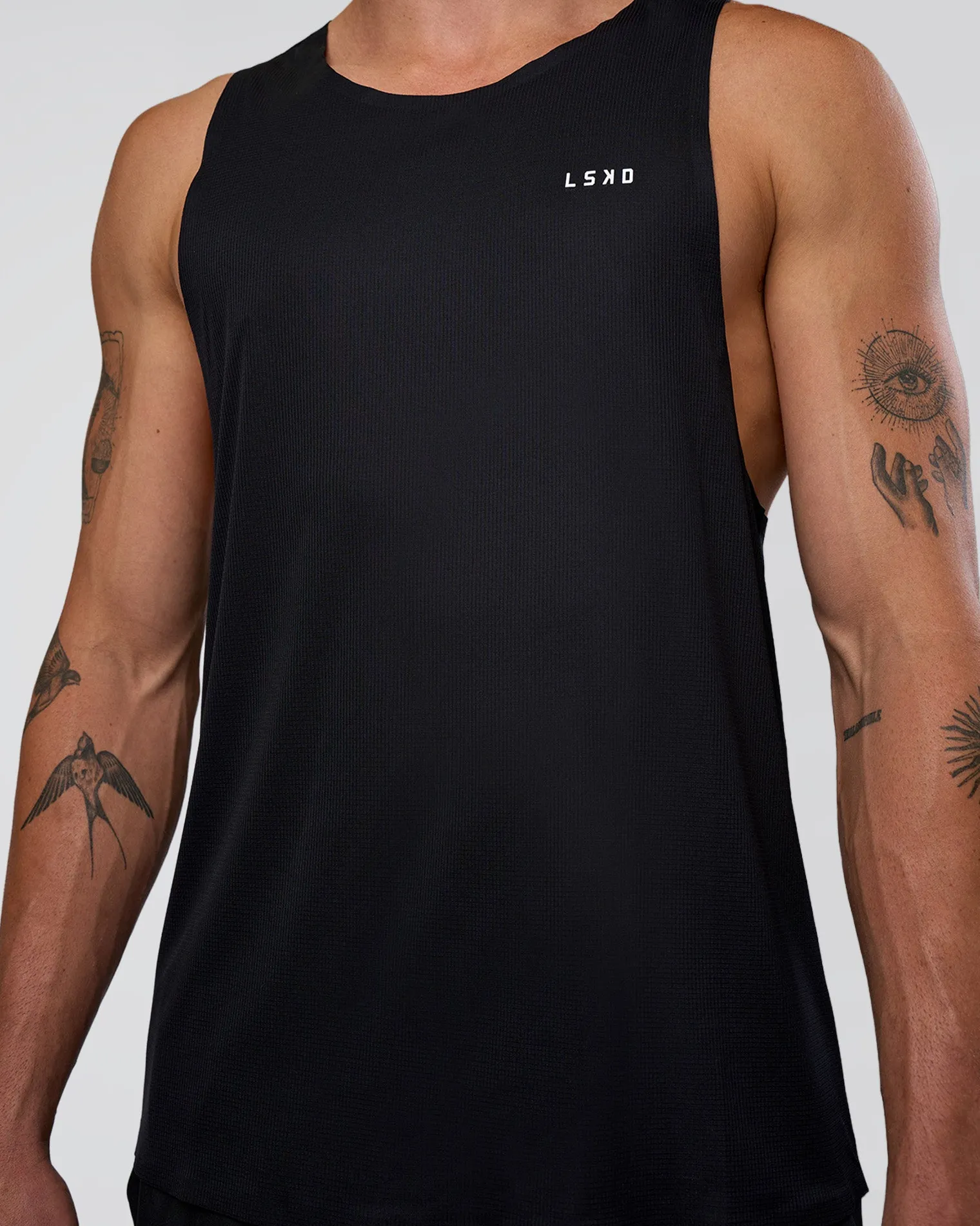 Designed to perform on Race Day; this black-white tank is an elite-level race tank that has been designed to allow maximum airflow and create a feeling of weightlessness. The goal with this tank is you shouldn’t even know you are wearing it.
