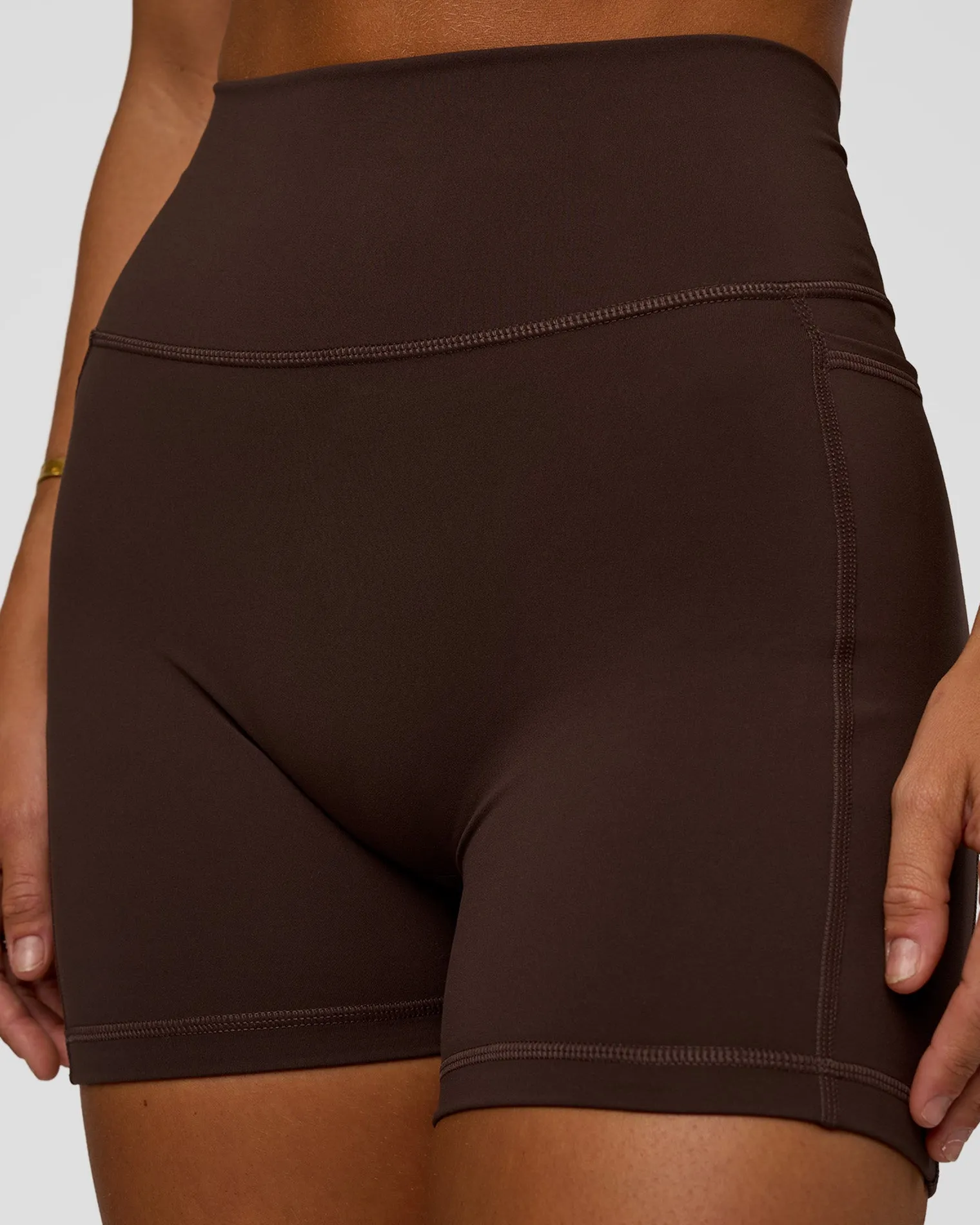 New LSKD Fusion V-Contour Ultra High-Rise 4” Short Pockets Hot Chocolate