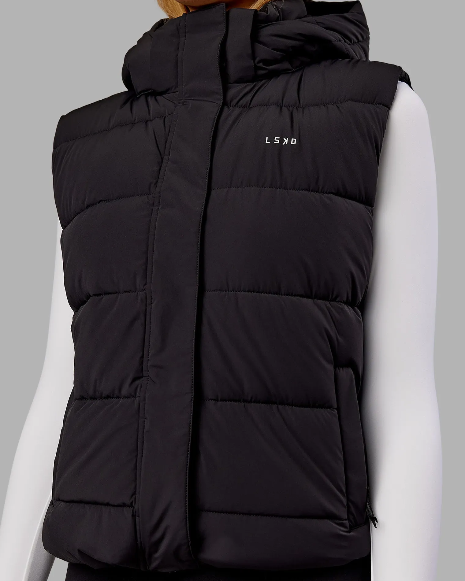 The Black Go-To Puffer Vest is designed to be the perfect extra layer for staying warm in cooler weather. With a relaxed fit, this puffer perfectly blends style with comfort to make it a Go-To piece in your winter wardrobe.