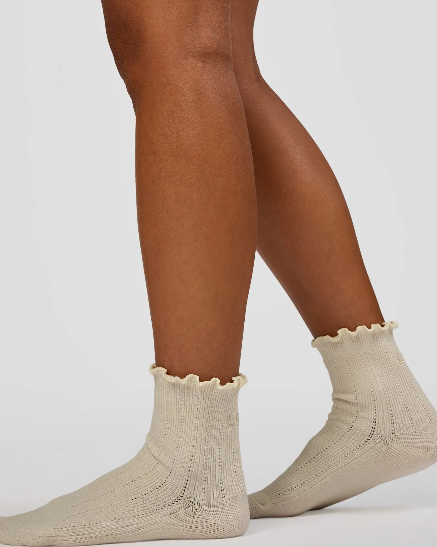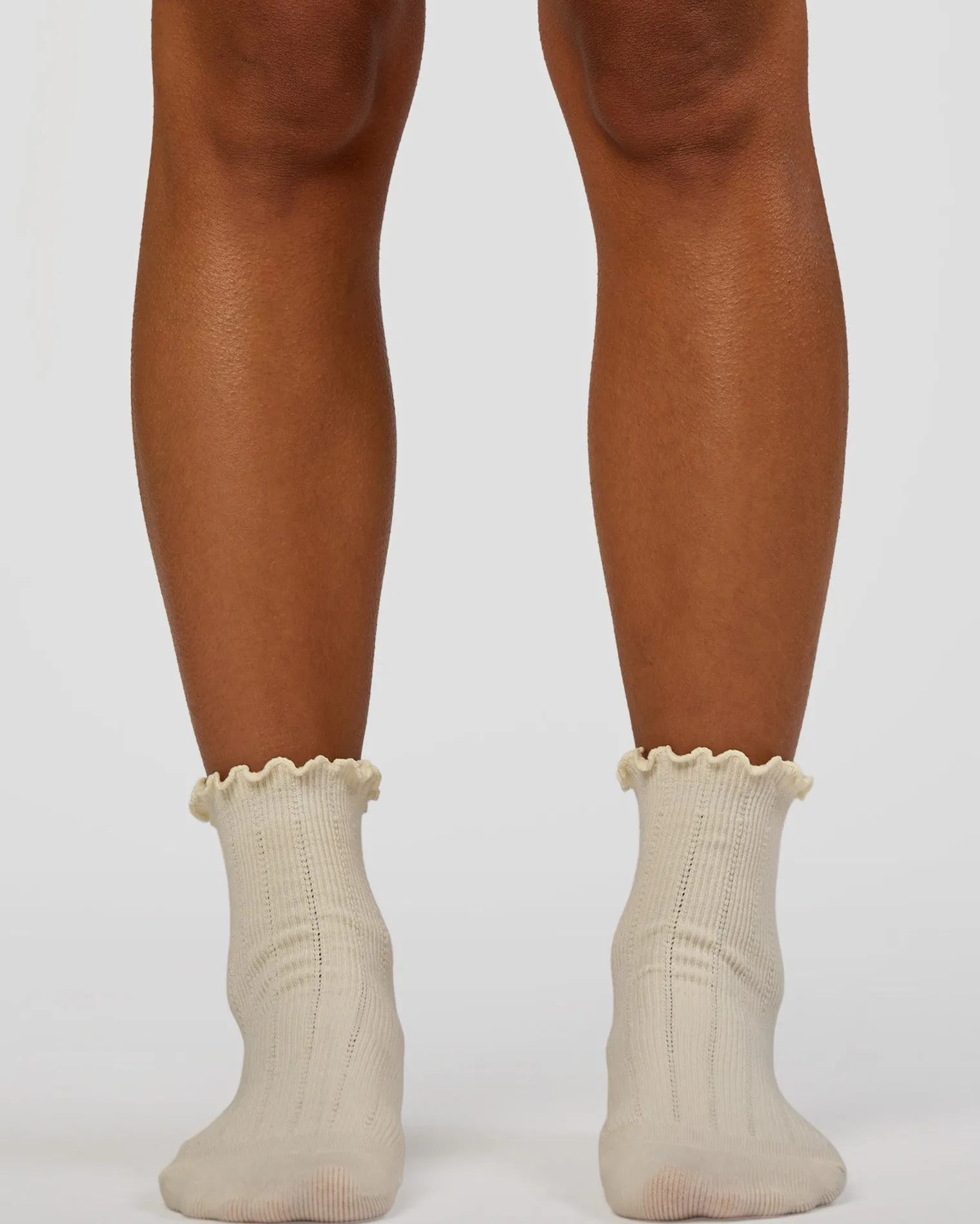 Designed for all-day comfort, with a touch of everyday style, the Ivory Frill Sock blends function and femininity. Soft, breathable, and effortlessly versatile – its the perfect finishing touch from workout to weekend.