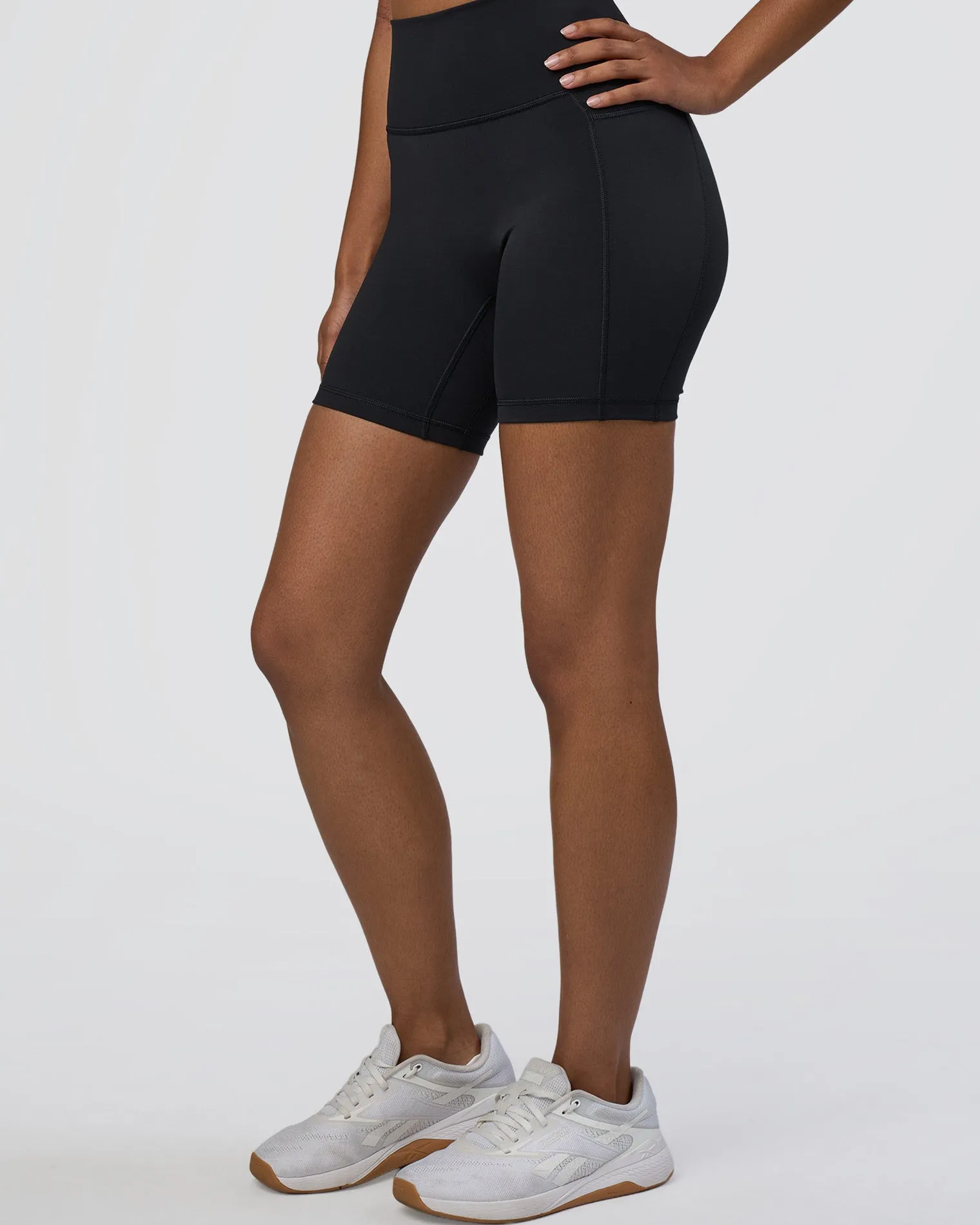 The same Fusion Mid Short Tights with Pockets you know and love, just with a name upgrade! These Black Fusion Ultra High-Rise 6″ Shorts With Pockets combine features from four of our beloved legging styles. Fused with all the good stuff, including a high rise fold over waistband, side pockets, 4-way stretch Rep fabric and we’ve removed the front seam for a comfortable, supportive fit. When it comes to versatile training, Fusion is your go to for all round performance.