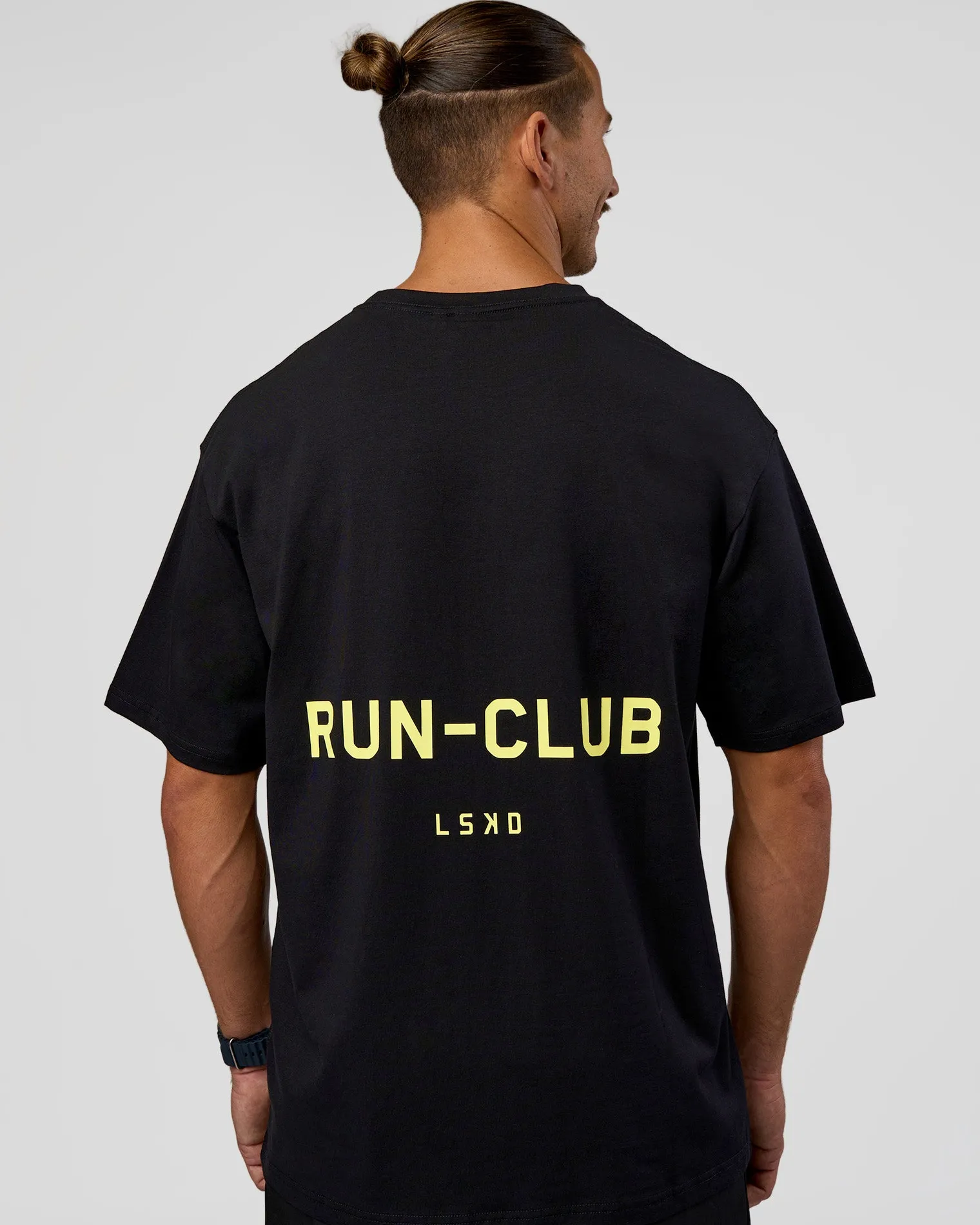 Outlet LSKD Unisex RUN CLUB FLXCotton Tee Oversize Black Yellow Fizz