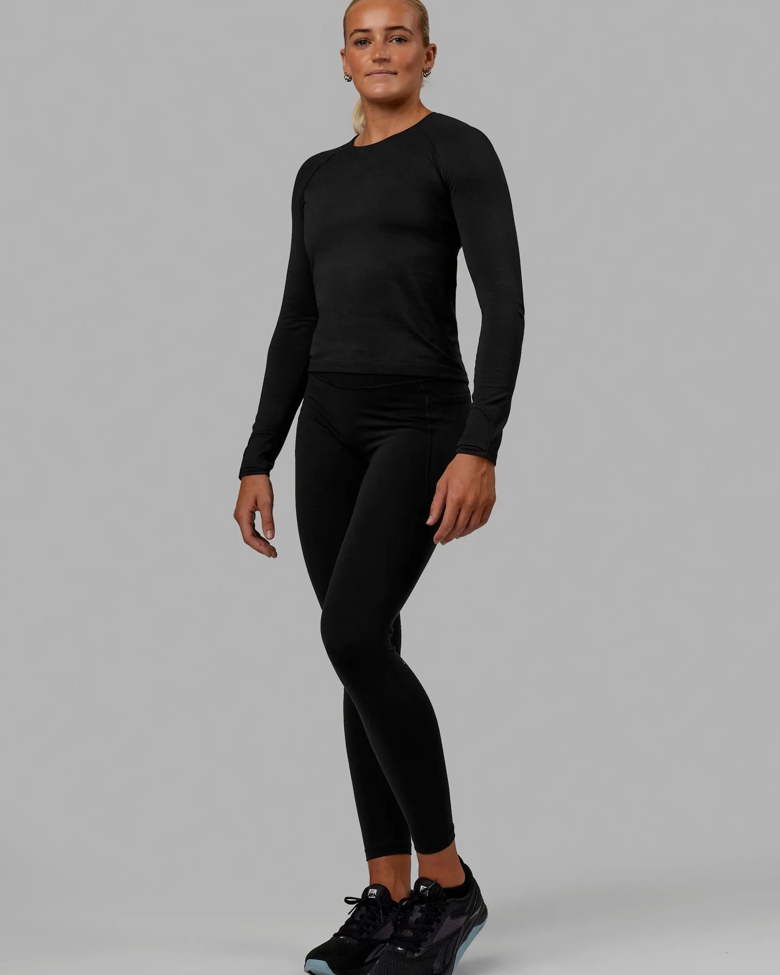 Outlet LSKD Womens AeroFLX+ Seamless Long Sleeve Tee Black Marl