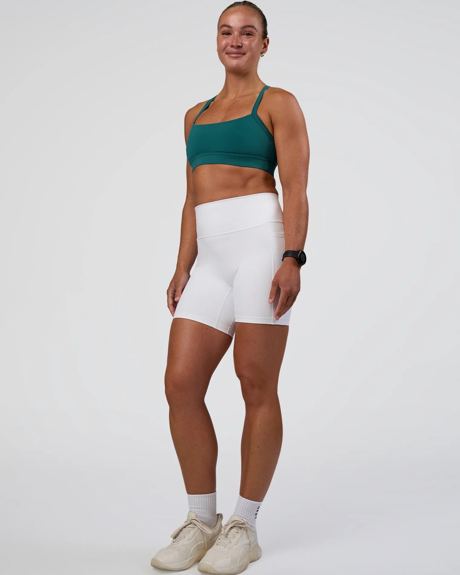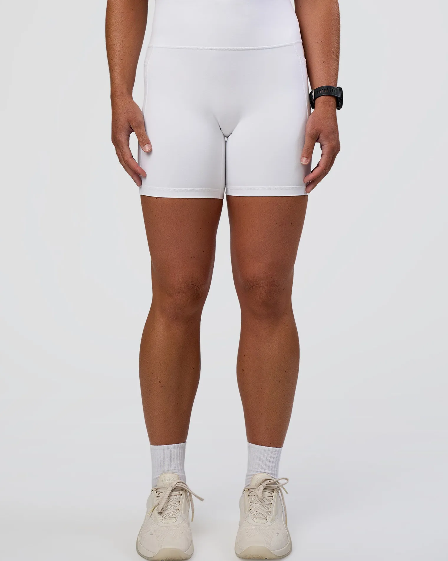 The same Fusion Mid Short Tights with Pockets you know and love, just with a name upgrade! These White Fusion Ultra High-Rise 6″ Shorts With Pockets combine features from four of our beloved legging styles. Fused with all the good stuff, including a high rise fold over waistband, side pockets, 4-way stretch Rep fabric and we’ve removed the front seam for a comfortable, supportive fit. When it comes to versatile training, Fusion is your go to for all round performance.